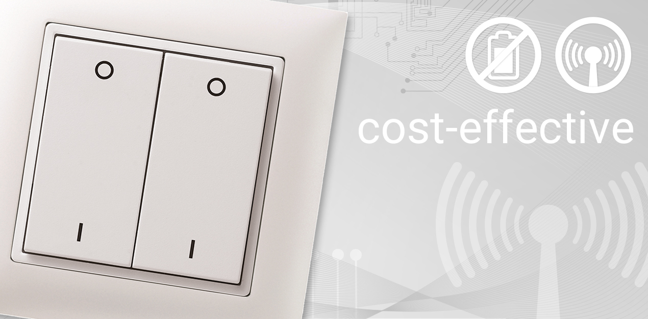 Batterieloser Funkschalter zur Zustandsänderung von Licht und Jalousie für EDIZIOdue- und STANDARDdue-Schalterprogramme. Die kabellose EnOcean-Funktechnologie ermöglicht das flexible Anbringen mithilfe von Klebepads oder Schrauben an Glas und Putz.