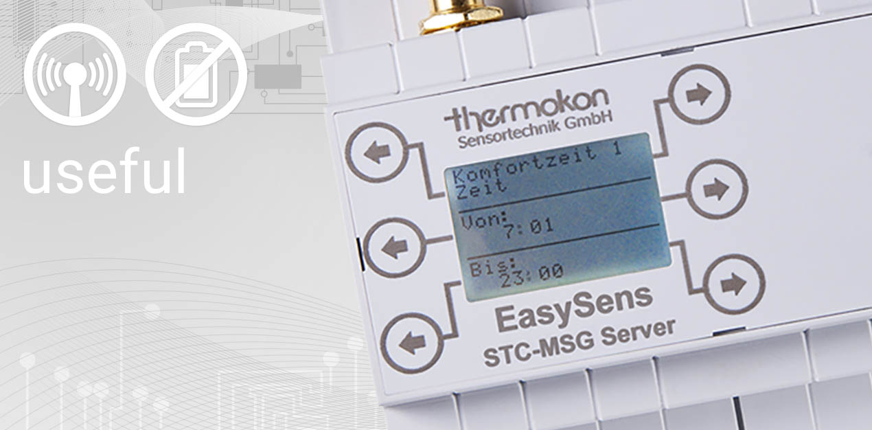 Der STC-MSG Server dient zur Einzelraumregelung in Verbindung mit Funk-Raumbediengeräten und bis zu 8 bzw. 16 SAB-Funk-Stellantrieben. Zur effizienten Energieeinsparung ist eine Zeitschaltuhr integriert. Weiterhin besteht die Möglichkeit, durch Einlernen von Funk-Fensterkontakten und Funk-Fenstergriffen die Funktion "Energiesperre" zu nutzen. Das bedeutet, dass bei offenem Fenster die Stellantriebe (Ventile) geschlossen werden, um Energie zu sparen. Die Parametrierung der einzelnen Funktionen erfolgt über ein integriertes Konfigurationsmenü und Display. Im Lieferumfang ist bereits eine externe Sende-/Empfangsantenne für bestmögliche Reichweiten enthalten.