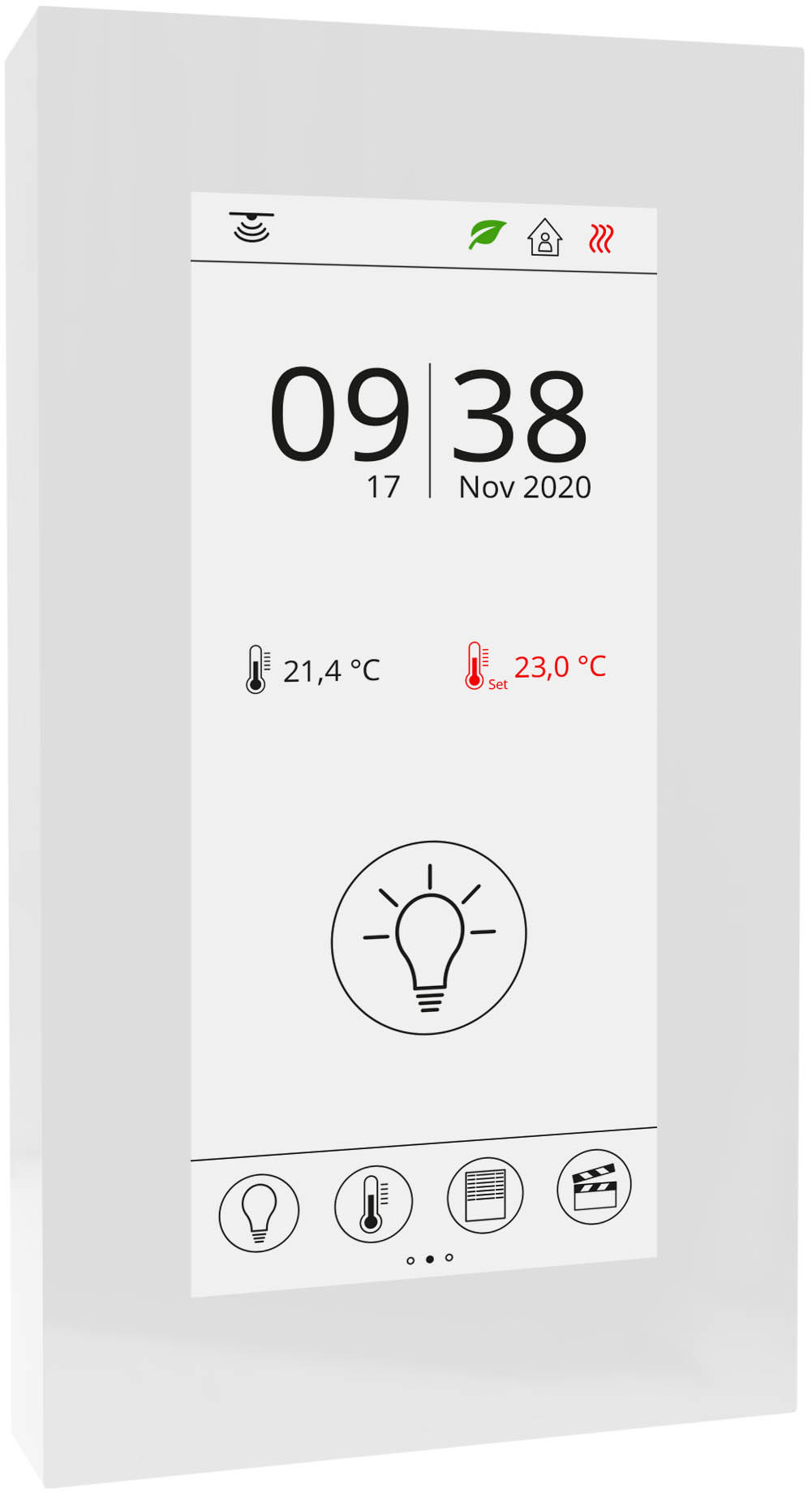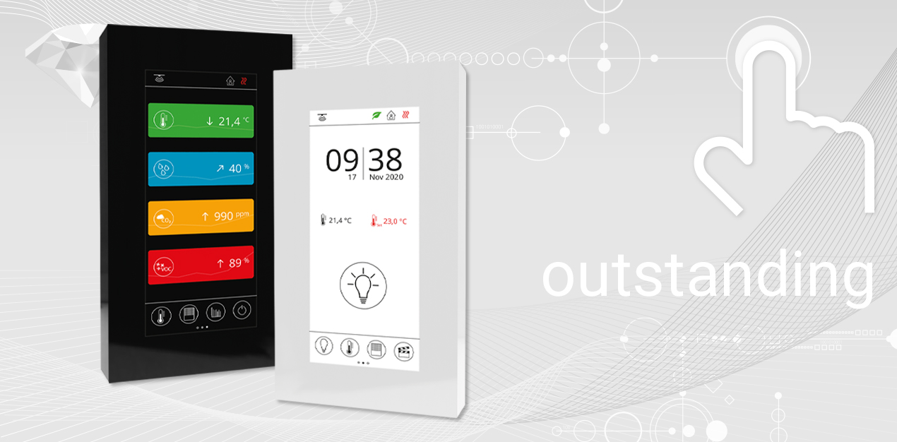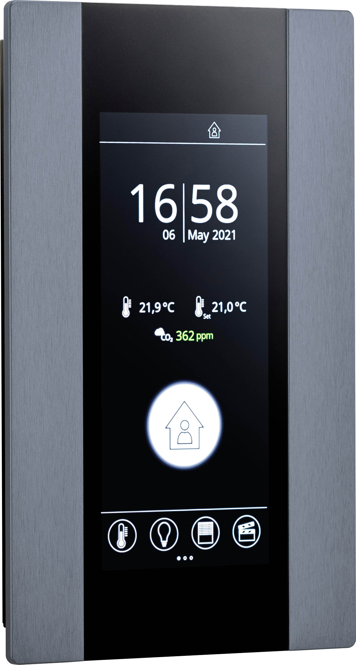 Dank innovativer Features, deren Bündelung in einem Raumbediengerät einzigartig ist, wird die Raumsteuerung mit thanos EVO einfach, selbsterklärend und für alle Anforderungen passend. Neben Temperatur und Feuchte werden auch die beiden Luftqualitätsparameter CO2 und VOC gemessen; externe Sensorwerte lassen sich über die BUS-Schnittstelle einblenden. Auch die Anzeige von kurzen Textnachrichten und die Verwendung von 2D-Raumgrafiken, die z. B. das Ein- und Ausschalten des Lichts für wechselnde Nutzergruppen komfortabel machen, unterstützen die leichte Bedienung. Weitere Features umfassen eine ECO-Funktion sowie eine komfortable Jalousiensteuerung.