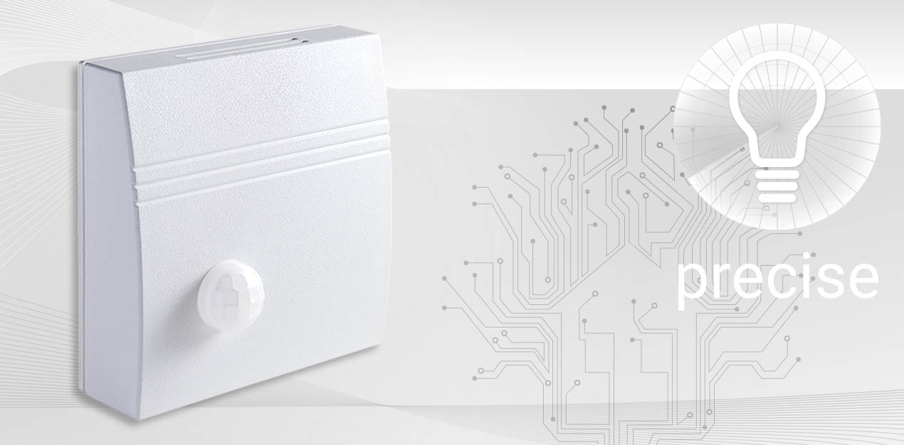 Der Aufputz-Bewegungsmelder detektiert Personenbewegungen und schaltet einen Relaiskontakt zur Lichtsteuerung oder zur Temperaturabsenkung von unbenutzten Räumen. Einsatzgebiete des Sensors sind zum Beispiel Wohn- und Geschäftsräume, Büros und Flure. Montierbar ist das Gerät direkt auf der Wand, auf einer Unterputzdose oder auch in Verbindung mit einem als Zubehör erhältlichen Aufputzrahmen.