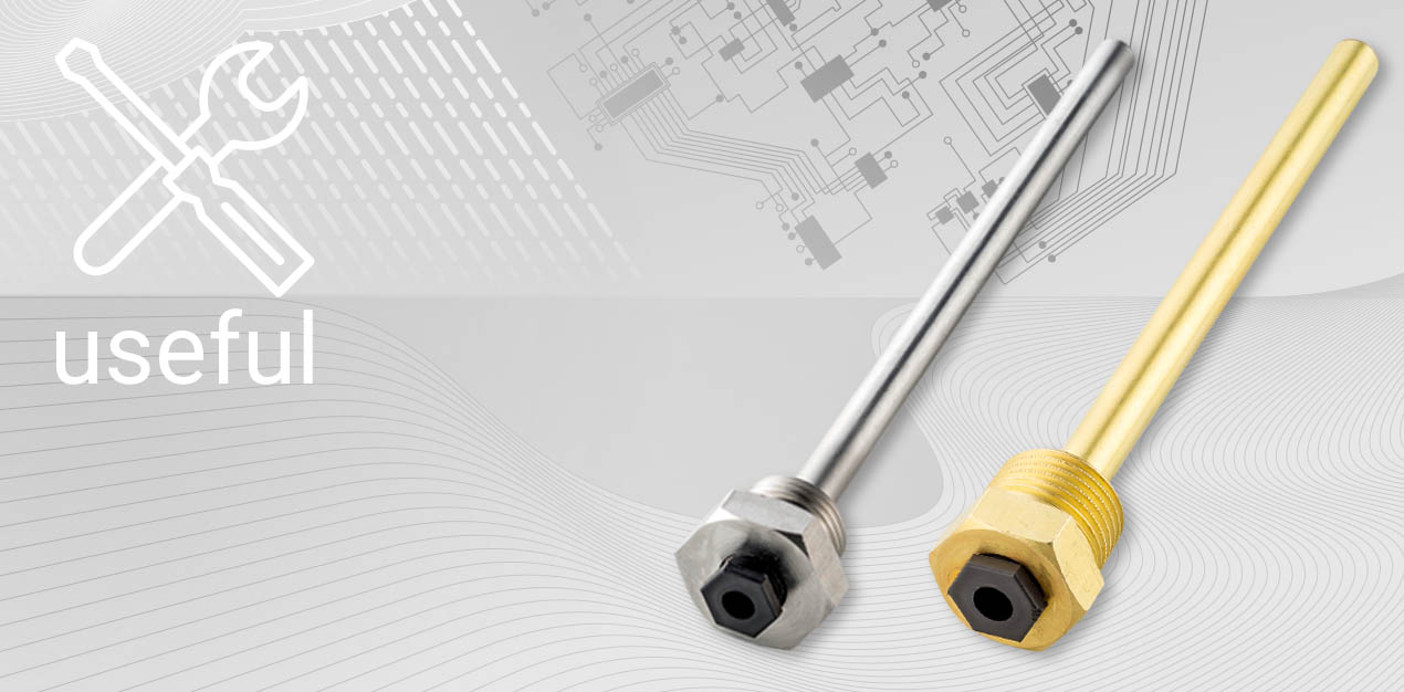 For using our sensors in liquid media thermowells are available for the standard mounting lengths made of brass and stainless steel, also without silicone if necessary.