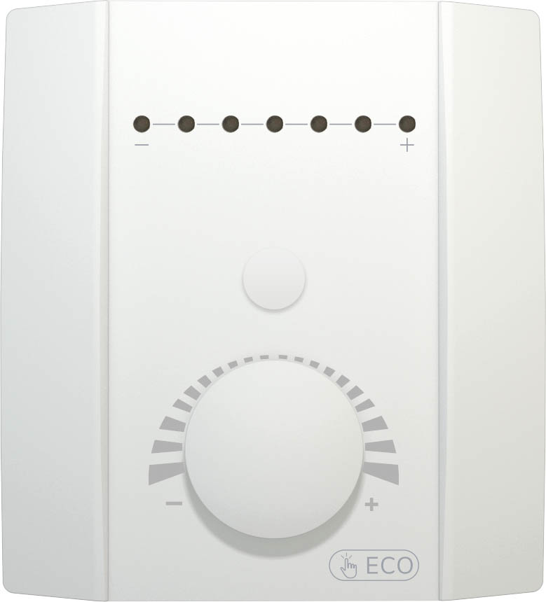 ajuste del valor de consigna temperatura, ajuste de la etapa del ventilador, máx. 5 etapas, detección de presencia, función ECO |