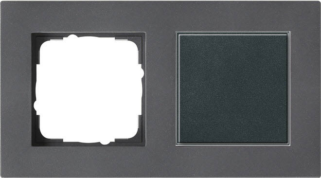 Ensemble cadre 2x Gira E2 anthracite avec couverture aveugle