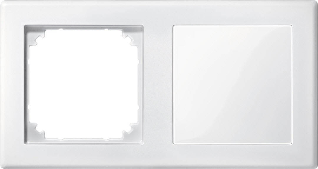 Ensemble Cadre 2x Merten M-Smart blanc polaire mat avec couverture aveugle