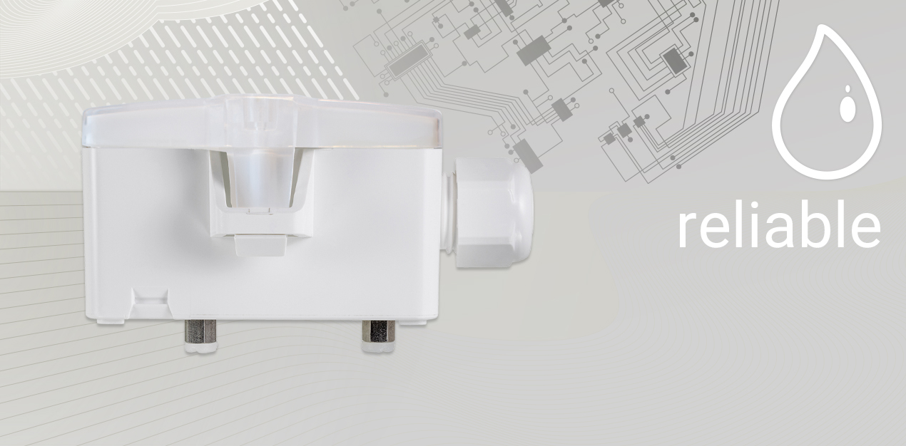 Rilevatore di perdite con uscita a relè e due LED di segnalazione, progettato per applicazioni di allarme, controllo e monitoraggio di container, falsi pavimenti, controsoffitti o locali per prevenire l'ingresso involontario di acqua. Il sensore può essere regolato a diverse altezze, in modo che il tempo di risposta del sensore possa essere adattato al livello dell'acqua da rilevare.