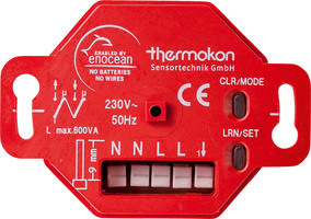 Ricevitore radio bidirezionale da incasso con telegrammi di commutazione EnOcean per applicazioni di illuminazione (ad es. accensione/spegnimento della luce, funzione scale, interruttore crepuscolare, ecc.) Le funzioni possono essere parametrizzate tramite un pulsante di programmazione.