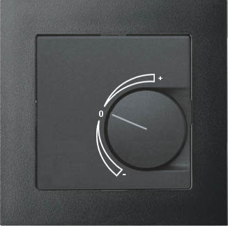 | Elementi operativi | potenziometro (P), 10 kOhm, 1 kOhm, 5 kOhm, attivo 0..10 V, (varia in base al placca), interruttore a bilanciere (S), 2 stadi di ventilador, 3 stadi di ventilador, capacità di commutazione max. 24 V =/~, 5 W, etichettatura standard del produttore, pulsante (T) |