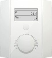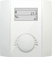 draai-/drukknop voor setpoint-instelling/ECO-functie, knop voor het instellen van de ventilatorstand tot 5 trappen, knop (T), met LED 24 V =, kleuren configureerbaar via jumpers (7 kleuren) |