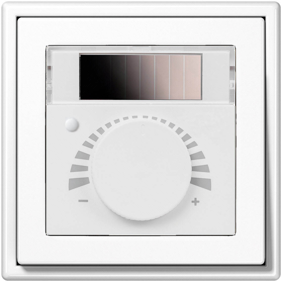 Potentiometer (P), Beschriftung {- [Skala] +}, Taster (T) | Sollwertverstellung Temperatur, Präsenzmeldung