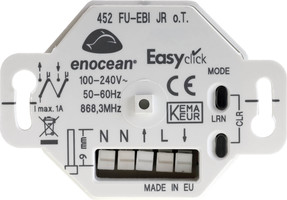 Bidirectional flush-mounted receiving actuator for blind applications compatible with EasySens® wireless switches and room operating units. The functions can be parameterised via programming button.