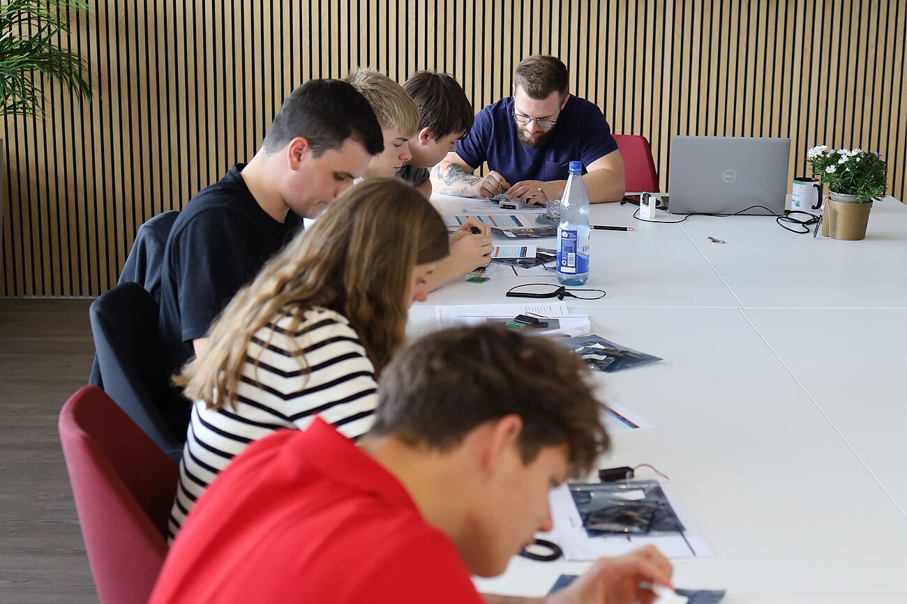Auch wenn nicht jede Lötstelle sofort perfekt saß, halfen sich die Azubis untereinander. Unsere Profis prüften die Ergebnisse und gaben Tipps, wenn etwas nicht ganz funktionierte. So konnten selbst diejenigen, die später eher im Büro arbeiten werden, schon nach kurzer Zeit bei Begriffen wie „Lötbrücke“, „Anode“ oder „Kathode“ mitreden.